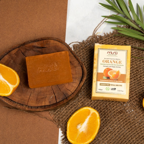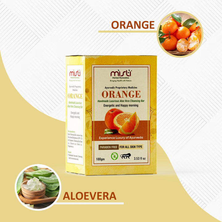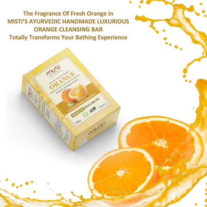 HOW TO USE: Wet the affected skin area and use Misti’s luxurious Ayurvedic handmade Orange Bar and gently wash the skin with plain water. Pat dry the skin without rubbing. This cleansing bar can be used as daily bathing soap and face soap as per need.