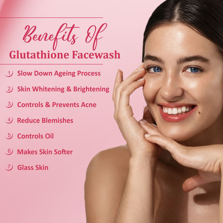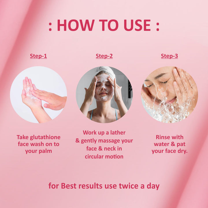 NO HARMFUL CHEMICALS: Glutathione face wash is free from silicon, paraben, sulfates, and related harmful chemicals. Its natural formula act as excellent skin whitening and anti-aging product.