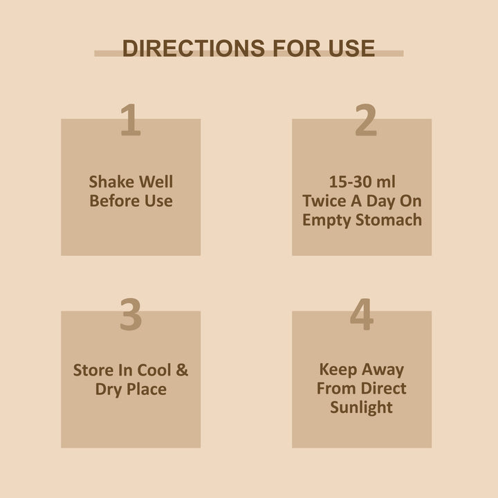 HOW TO USE: Regularly Take 15 ml twice a day on empty stomach. Use for at least 2-3 months for better results.