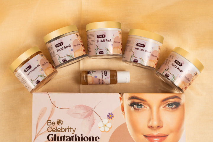 Step-5: Glutathione Serum Apply glutathione serum on your face and neck and massage it gently till completely absorbed.